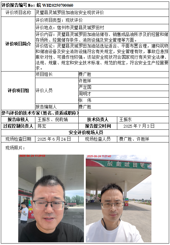 靈璧縣靈城羅田加油站安全現(xiàn)狀評價