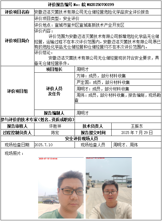 安徽邁潔滅菌技術(shù)有限公司無倉儲經(jīng)營危險化學品安全評價報告