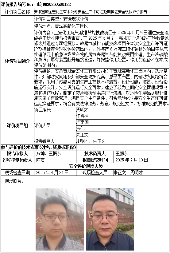 安徽宣城金宏化工有限公司安全生產(chǎn)許可證延期換證安全現(xiàn)狀評(píng)價(jià)報(bào)告