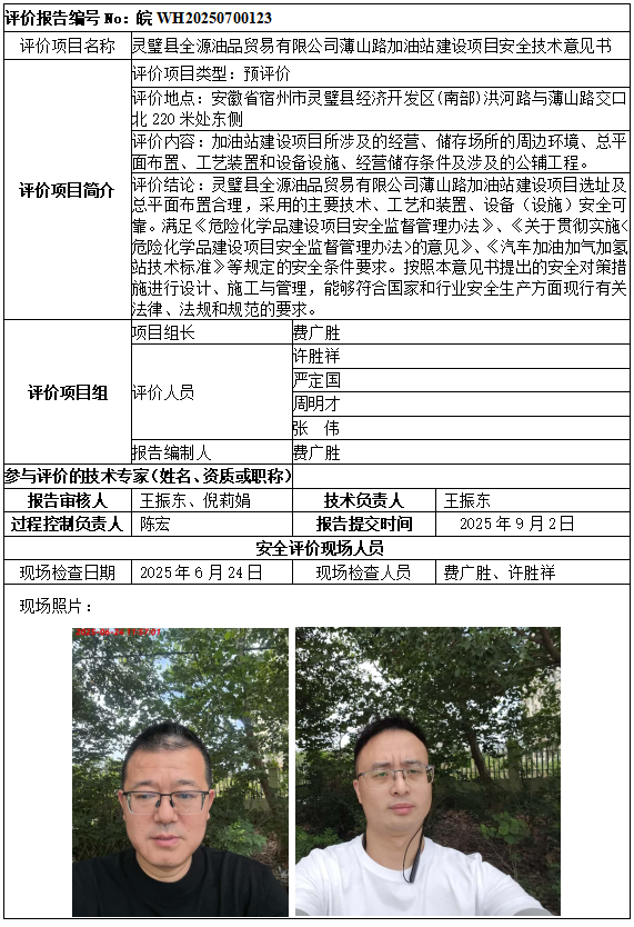 靈璧縣全源油品貿易有限公司薄山路加油站建設項目安全技術意見書
