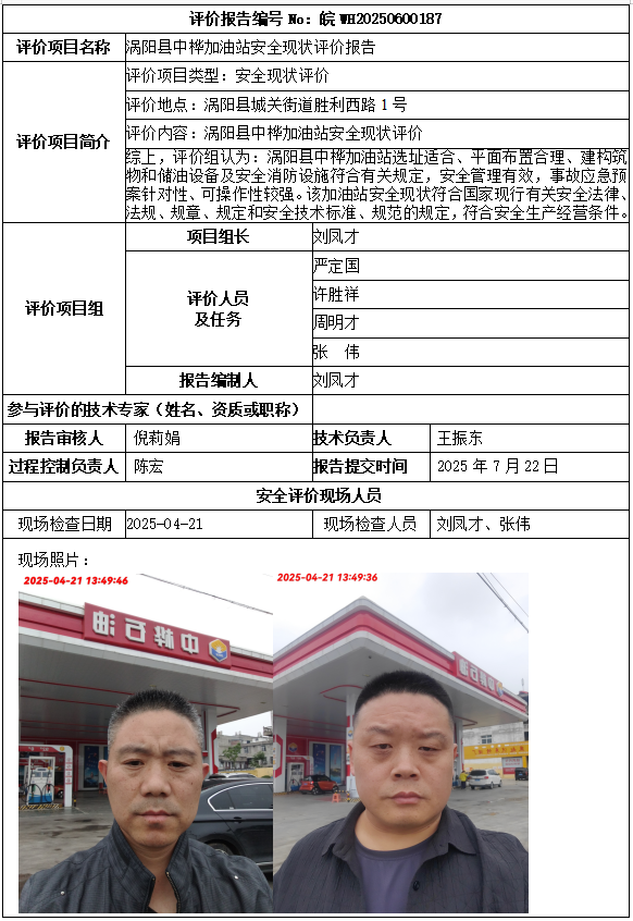 渦陽縣中樺加油站安全現(xiàn)狀評(píng)價(jià)報(bào)告