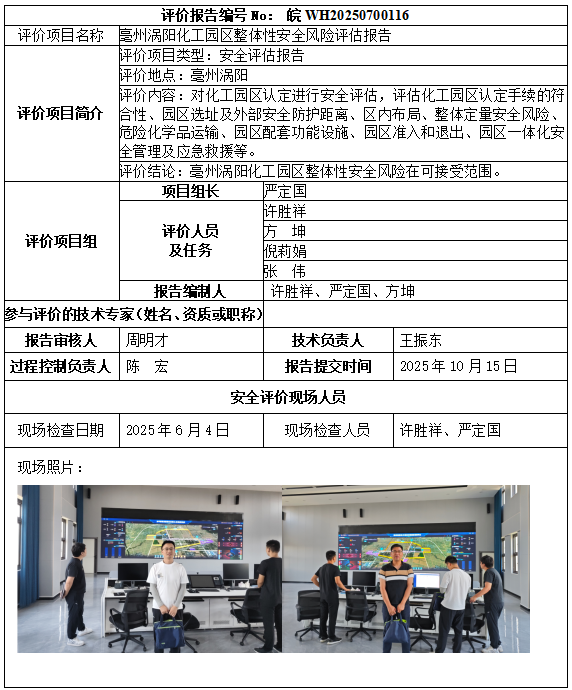 亳州渦陽(yáng)化工園區(qū)整體性安全風(fēng)險(xiǎn)評(píng)估報(bào)告